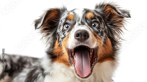 Australian shepherd panting isolated on white : Generative AI