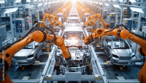 Automated Car Manufacturing Assembly Line with Robotic Arms