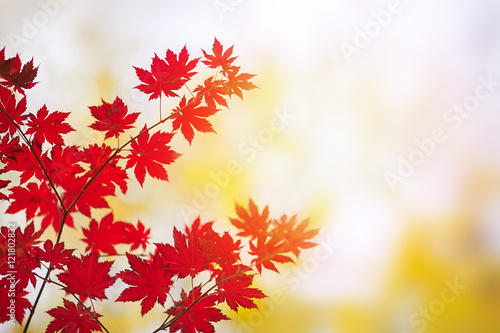 Autumn. A branch of red maple and sunlight.