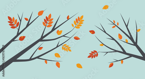 Autumn leaves falling from branches nature scene digital art calm environment aerial view seasonal change. Vector illustration