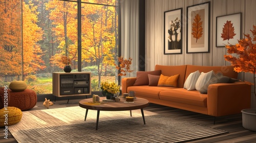 Autumn living room decor with orange accents cozy home interior design fall vibe warm atmosphere
