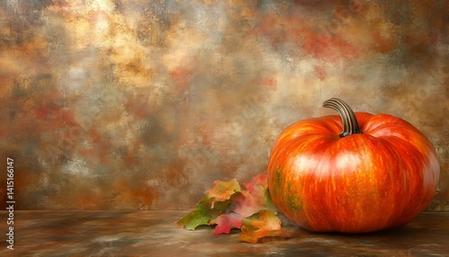 Autumn pumpkin display on textured background