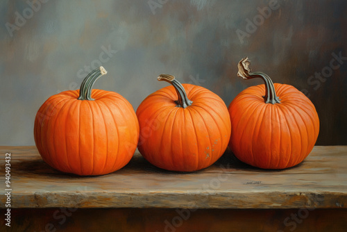 Autumn still life with pumpkins on a wooden table