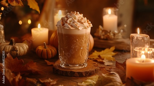 Autumnal Spiced Latte with Whipped Cream and Candles