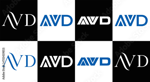 AVD logo. AVD set , A V D design. White AVD letter. AVD, A V D letter logo design. Initial letter AVD letter logo set, linked circle uppercase monogram logo. A V D letter logo vector design.