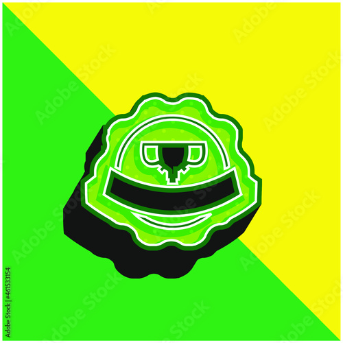 Award Label With Trophy Sign And A Banner Green and yellow modern 3d vector icon logo