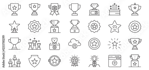 Awards and Bonuses Icons Set – Modern Thin Line Vector Illustration