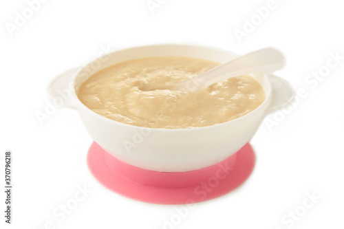 Baby porridge on plate isolated on white background