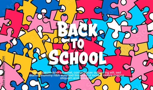 Back to school colorful Puzzle banner design template. Colorful Back to school puzzle background.