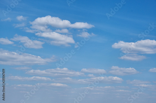 Background clouds on blue sky. White Cumulus clouds in clear weather. The sky on a Sunny summer day.