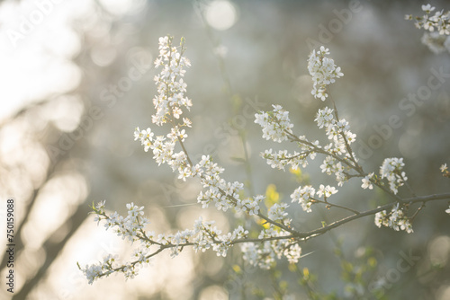 Background of blooming cherry branches in the sunlight...