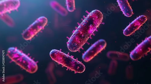 Bacteria Colony concept. Colorful bacteria floating in a dark environment, showcasing intricate details and textures.