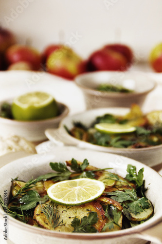 Baked vegetables in bowls