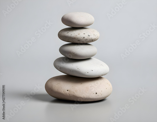 Balanced Stone Pile . Rocks balancing on one another. Concept of balance, zen, calm, wellness, meditation, spirituality.