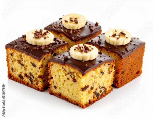 Banana cake with chocolate isolated on white background