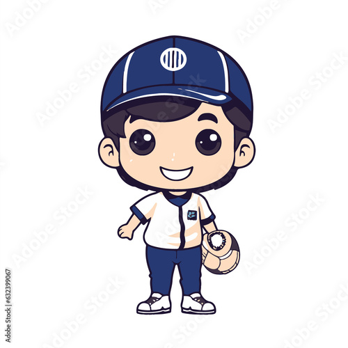 Baseball player in uniform with ball. cartoon flat style illustration. Generative AI