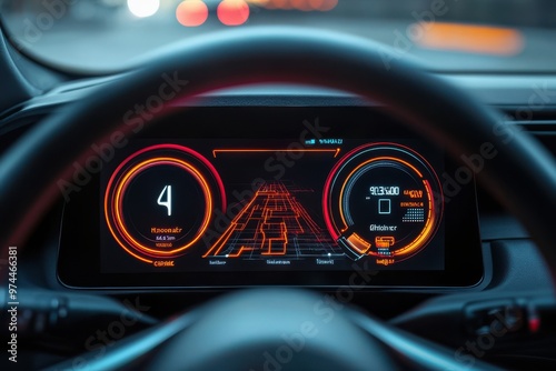 Battery Levels on Electric Car Dashboard with Spacious Copy Area and Bright Lighting