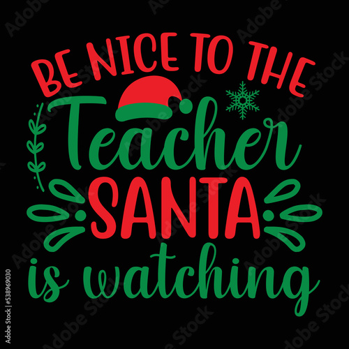 Be Nice To The Teacher Santa Is Watching shirt, Merry Christmas shirt, Christmas SVG, Christmas Clipart, Christmas Vector, Christmas Sign, Christmas Cut File, Christmas SVG Shirt Print Template