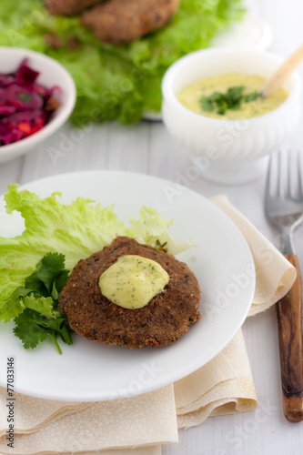 bean burger with aioli sauce