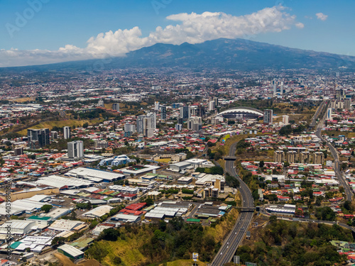 Beautiful aerial view of the city of San Jose with view of the Sabana Park and the Stadium.