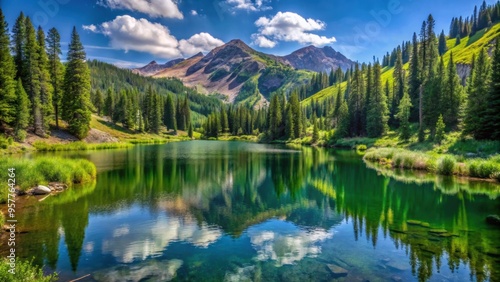 Beautiful alpine lake surrounded by lush forest in the Wasatch mountains of Salt Lake, Utah, alpine, lake, Wasatch mountains
