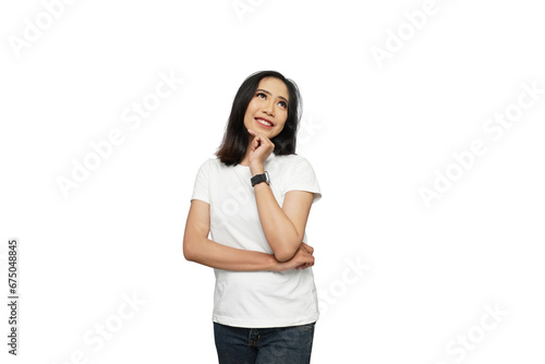 Beautiful Asian Girl Looking Up Cutout Isolated Background