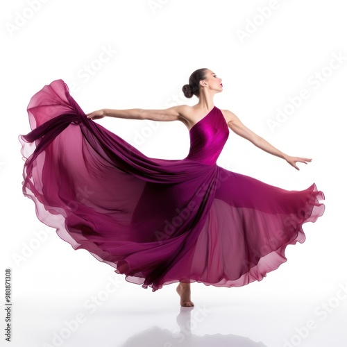 Beautiful ballerina in a purple silk skirt dancing recreation performer.