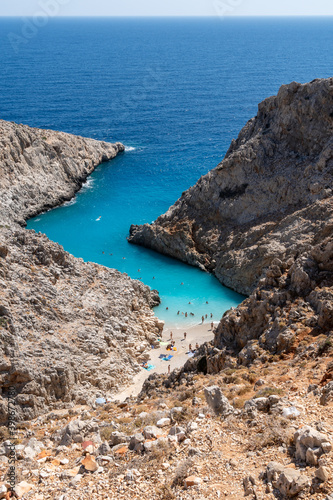 Beautiful beach Seitan limania also known as Stefanou beach on Crete, Greece. Superb bay in a canyon, this destination is hard to reach, famous place on island of Crete .