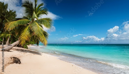 Beautiful beach with palms and turquoise sea in Jamaica island.