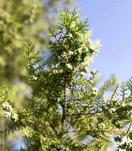 Beautiful branch of a thuja on nature