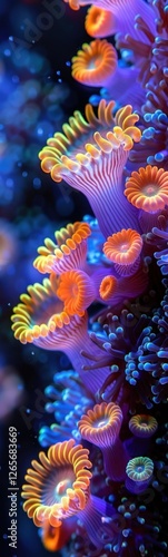 Beautiful brightly colored corals growing in clear ocean water, with vibrant hues of pink, orange, and blue creating an underwater paradise concept of marine life ecology