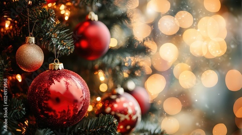 Beautiful Christmas decorations under the tree. AI generated illustration.