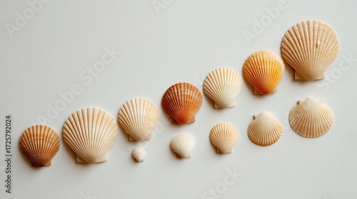 Beautiful Collection of Various Seashells Displayed on Light Surface
