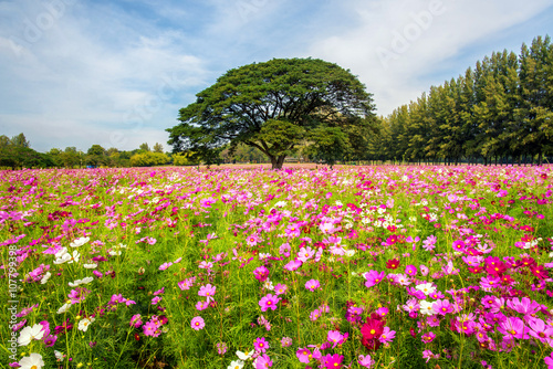 beautiful cosmos flowers field at Jim Thompson farm garden at Na