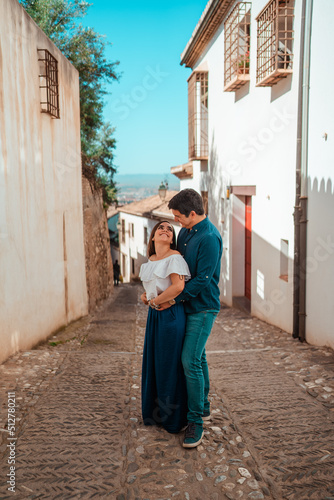 beautiful couple in love hugging and looking at each other