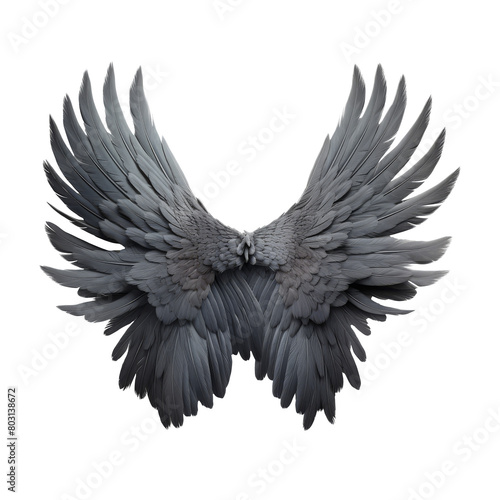Beautiful Detailed Gray Bird Wings Spread on transpart