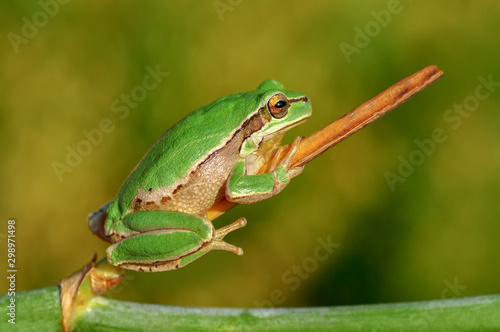 Beautiful Europaean Tree frog Hyla arborea - Stock Image