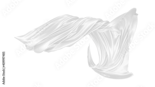 Beautiful flowing fabric of white wavy silk or satin. 3d rendering image.