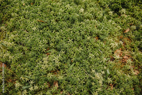 beautiful fluffy moss in a humid forest. swampy soil with moss. conservation of plant diversity. a rare plant species