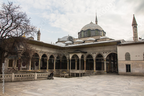 Beautiful historic pavilion at Topkapi Palace in Istanbul in cloudy weather. Turkey
