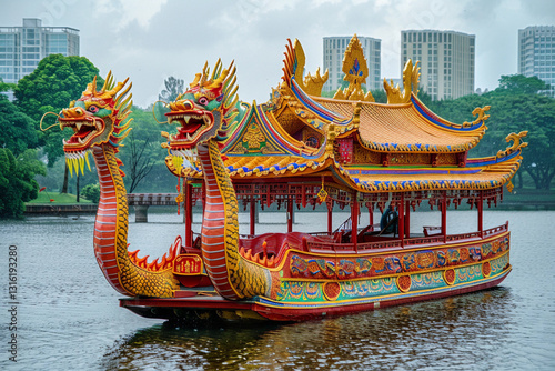 Beautiful holiday composition for happy celebrate chinese dragon boat festival, abstract vivid composition consists of fictional unreal fantastic vision on background