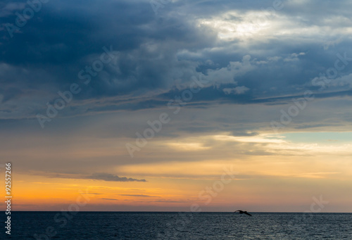 beautiful landscape with sunset over sea with dramatic sky
