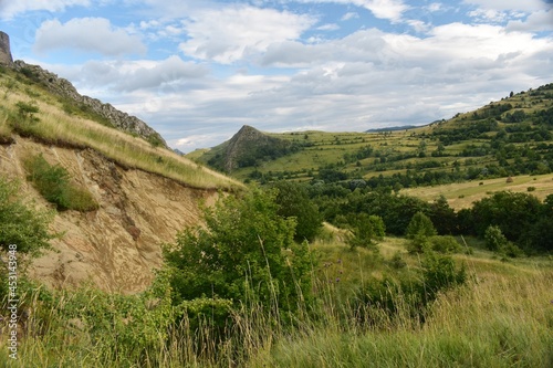 Beautiful landscape, with trees and hills on Trascau mountains in Transylvania, Romania.