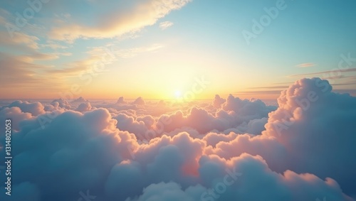 Beautiful, luxurious soft gradient clouds and sunlight against the blue sky, ideal for a background, captured in a large, high-definition landscape photo.