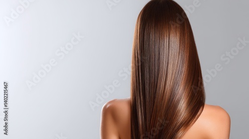 Beautiful model girl with Brown hair strand,silky healthy chestnut wavy hair strand,hair wavy ribbon, with smooth,Keratin straightening,Treatment,straight long hair,procedures,Smooth hairstyle.