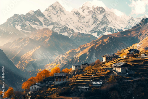 Beautiful mountain village nestled in snow-capped scenery isolated on transparent background