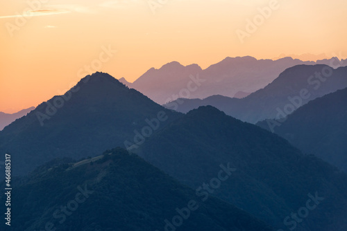 Beautiful mountains silhouettes at sunset