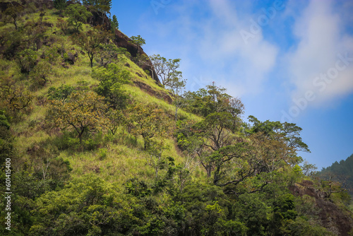 Beautiful mountains with different trees and green leaves in the forest
