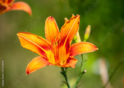 Beautiful orange-yellow daylilies in the summer garden.