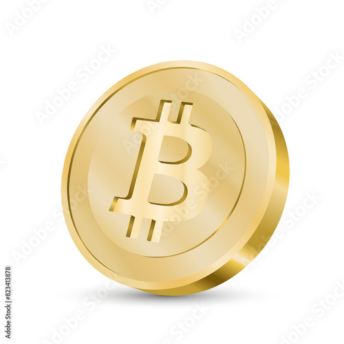 Beautiful realistic cryptocurrency illustration of golden bitcoin on transparent background